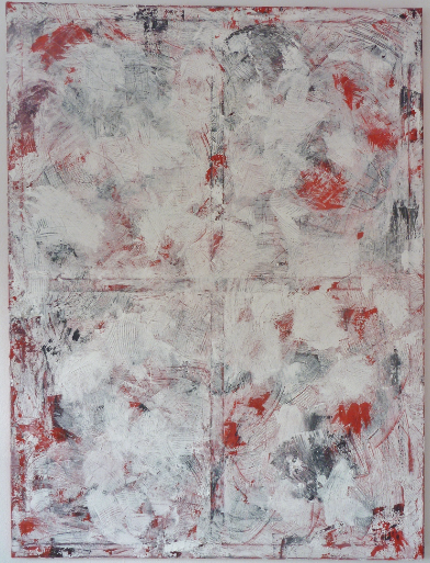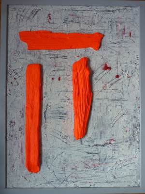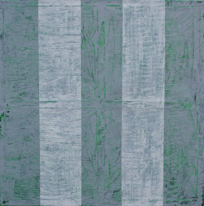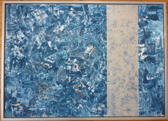 Acrylfarbe auf Leinwand im hellgrauen Holzrahmen